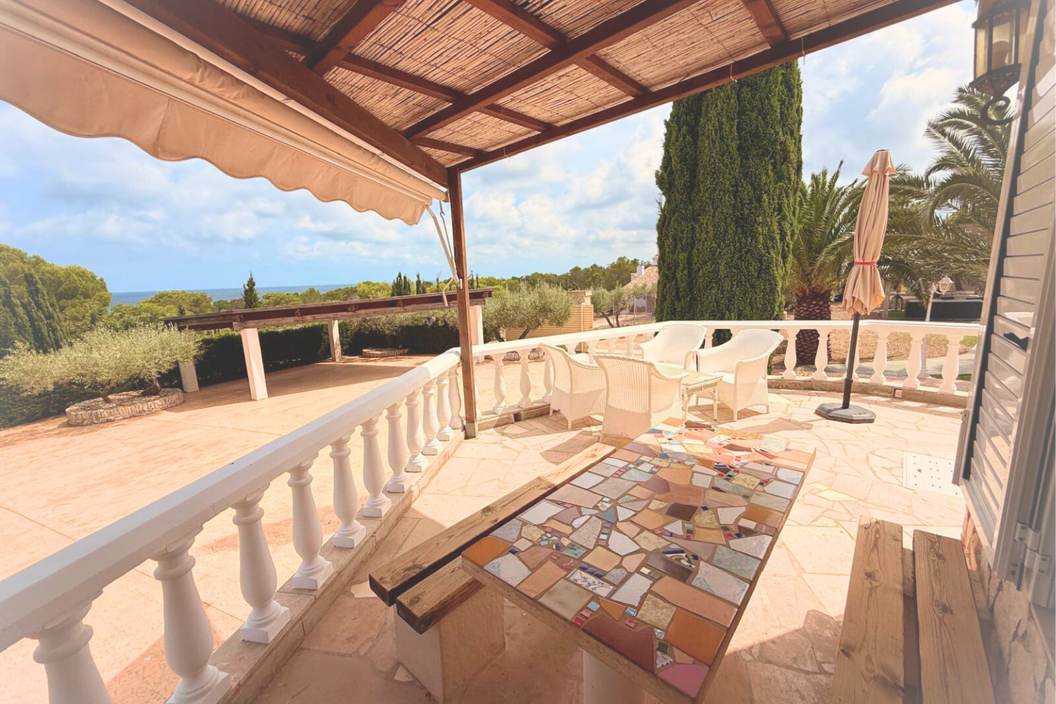 Encantadora casa de una planta con vistas al mar, gran terraza y un solárium en la azotea. Ideal si buscas tranquilidad y paz.